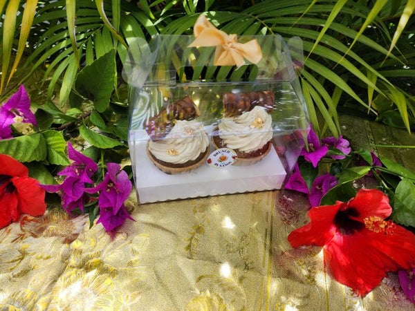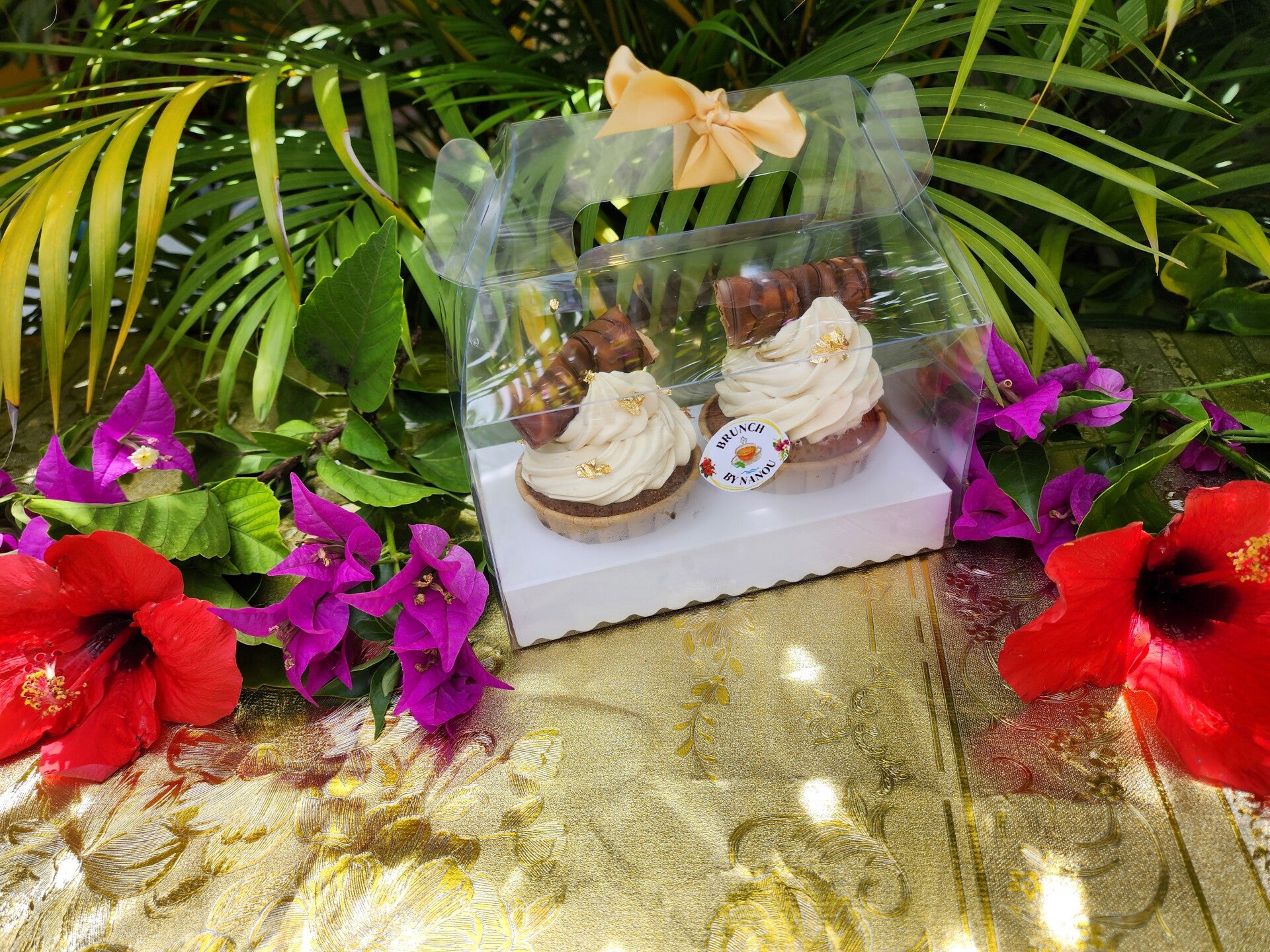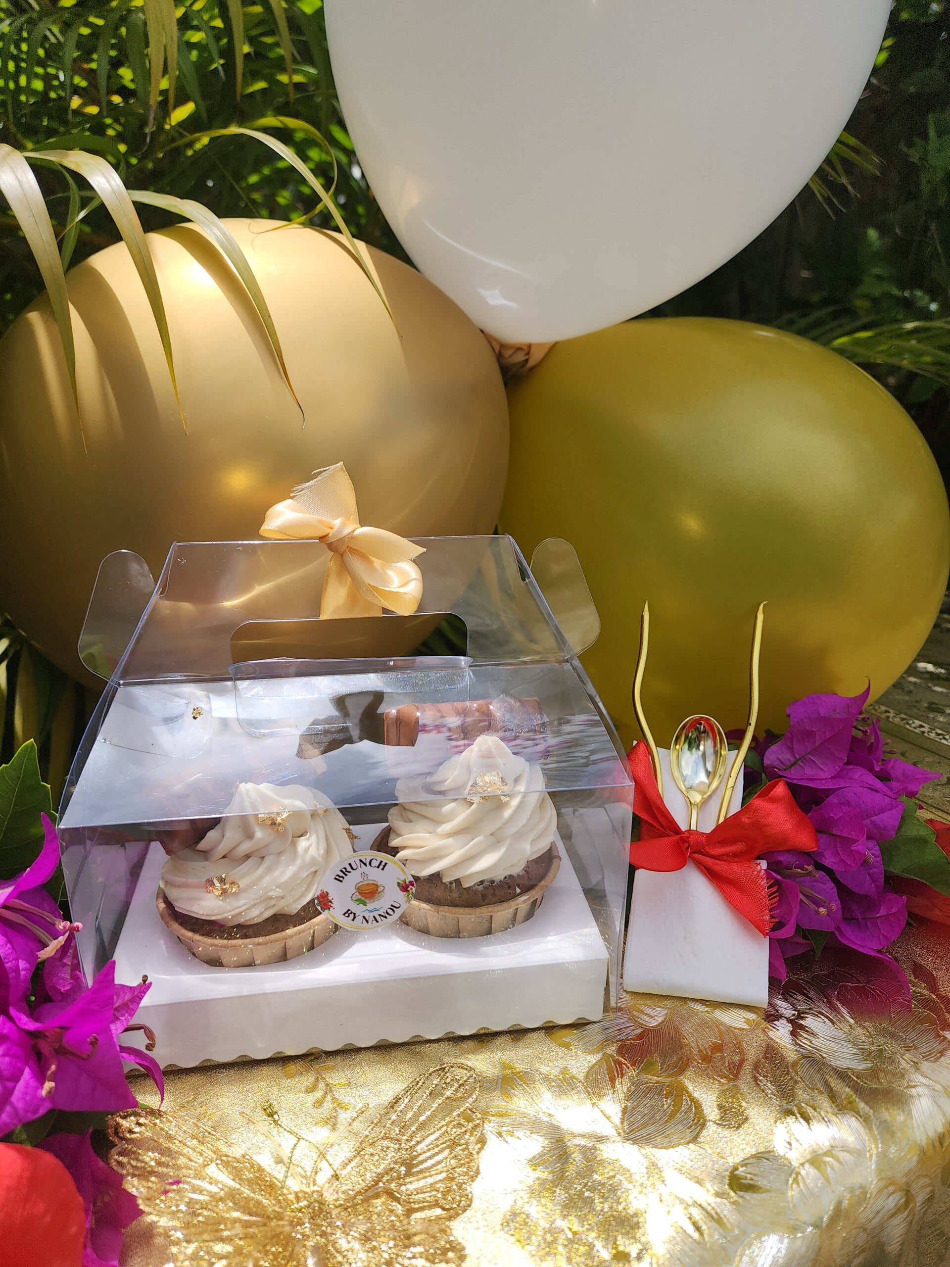 Offrez un délice avec la Box Douceurs Festives ! Chaque cupcake mêle une génoise moelleuse (nature ou chocolat), une crème gourmande (passion, chocolat ou vanille), et un topping savoureux (fruit frais ou Kinder). Disponible pour 2, 4 ou 6, personnalisez avec des bougies, ballons ou champagne. Livraison en Guadeloupe pour un moment festif ! Allergènes : Contient gluten, œufs, lait ; traces possibles de fruits à coque. Options sans gluten sur demande.