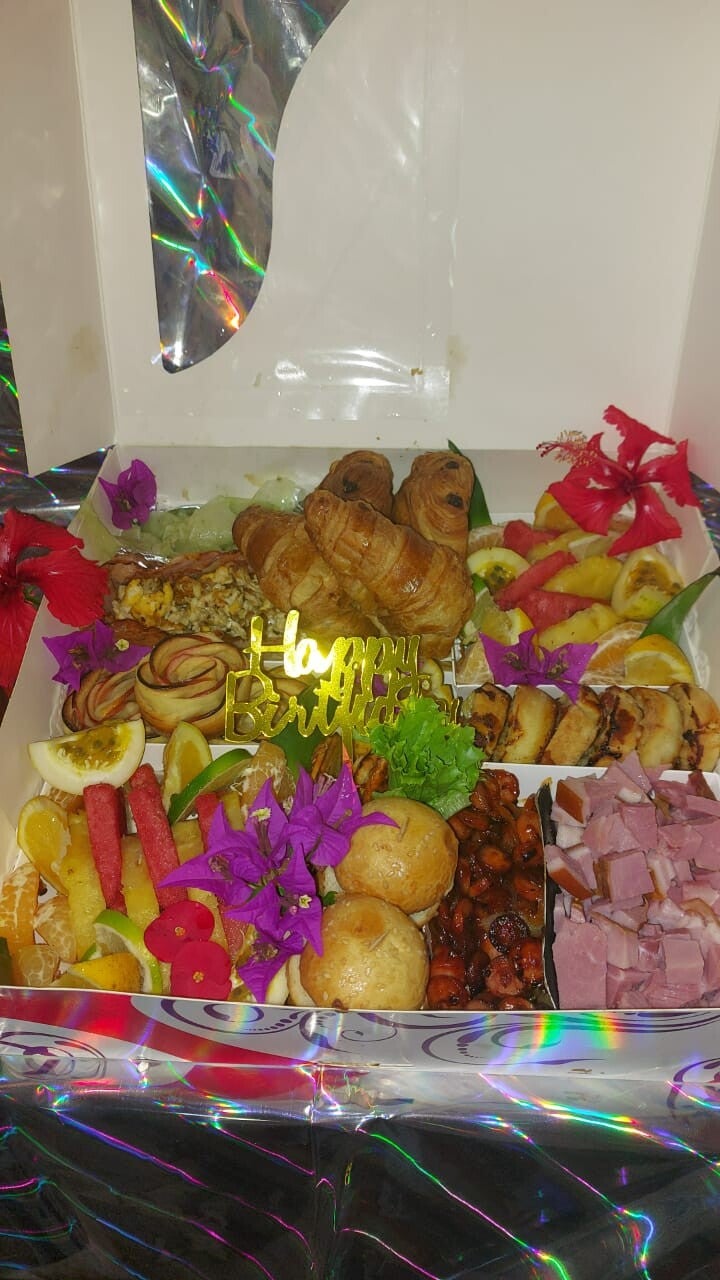 Réunissez vos proches avec la Box Famille "Festin des Îles" pour 4 personnes. Cette box généreuse célèbre les saveurs guadeloupéennes dans un équilibre parfait entre sucré et salé, parfaite pour un brunch convivial. Accompagnée de boissons et décorée avec soin, elle apporte une touche festive à votre table, livrée en Guadeloupe !